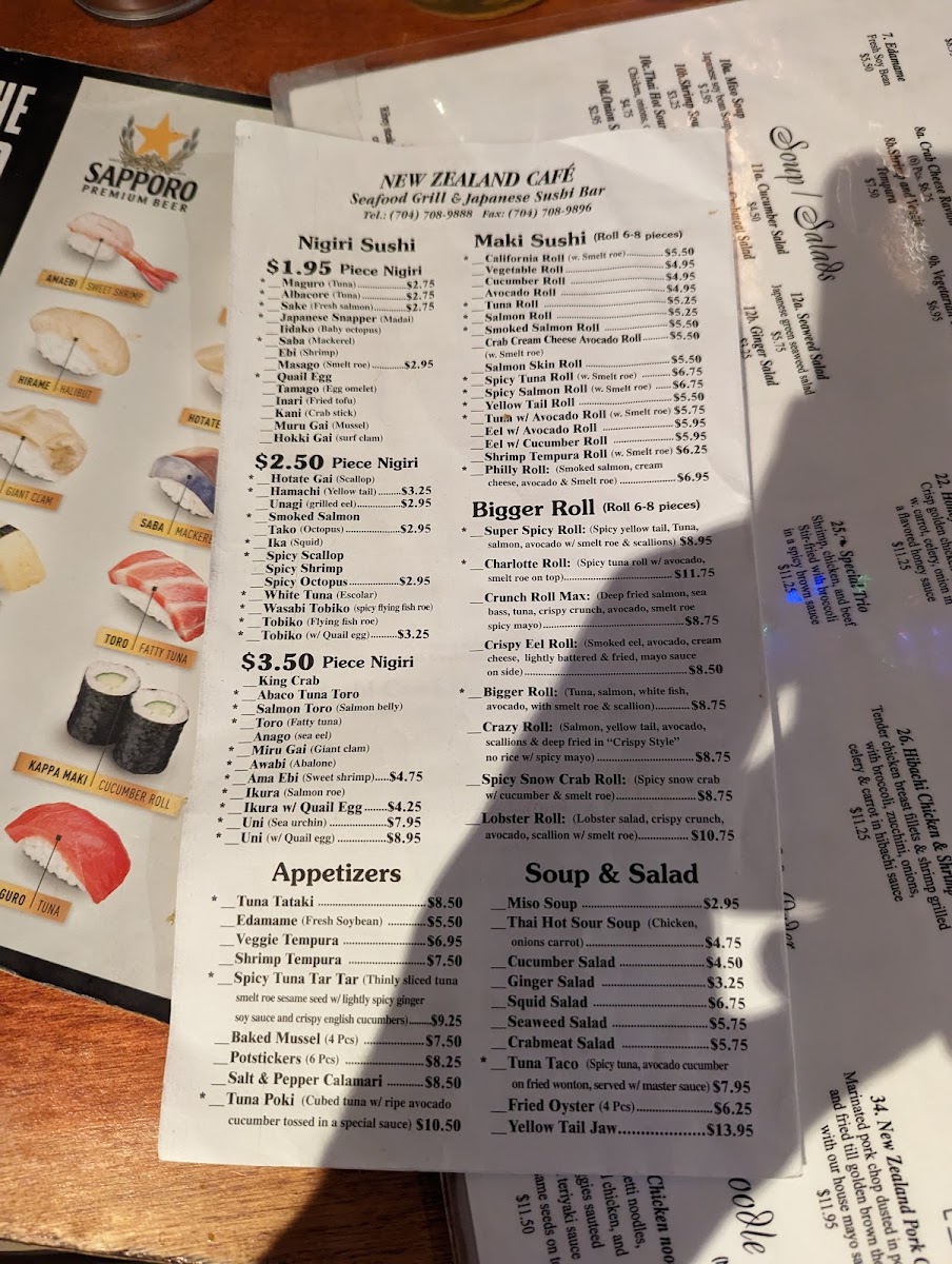I got “Favorite roll” and “Crispy scallop/shrimp with New Zealand” souse. Food was excellent, scallops were melting in my mouth. Amanda my server was very attentive and professional. I sat outside but indoor also looked very welcoming and authentic. Definitely will be back when visiting this part of Charlotte
